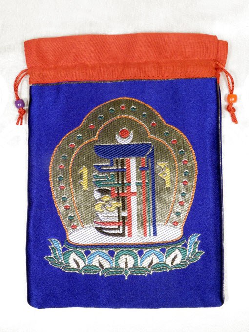 Brokat BEUTEL - Schmuck Tasche - 20x14cm - Mala bag - Kalachakra Symbol - blau - Nepal |